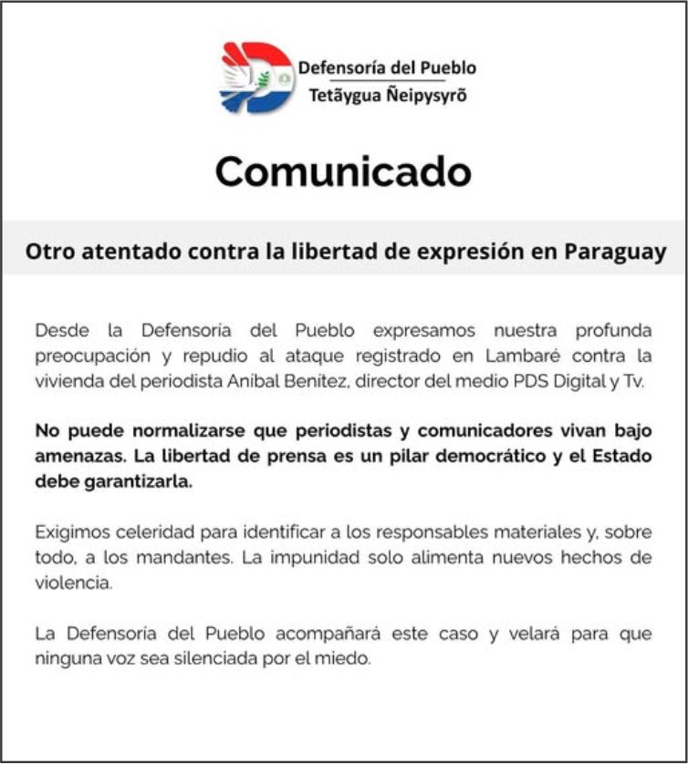 Comunicado ante otro atentado contra la libertad de expresión en Paraguay
