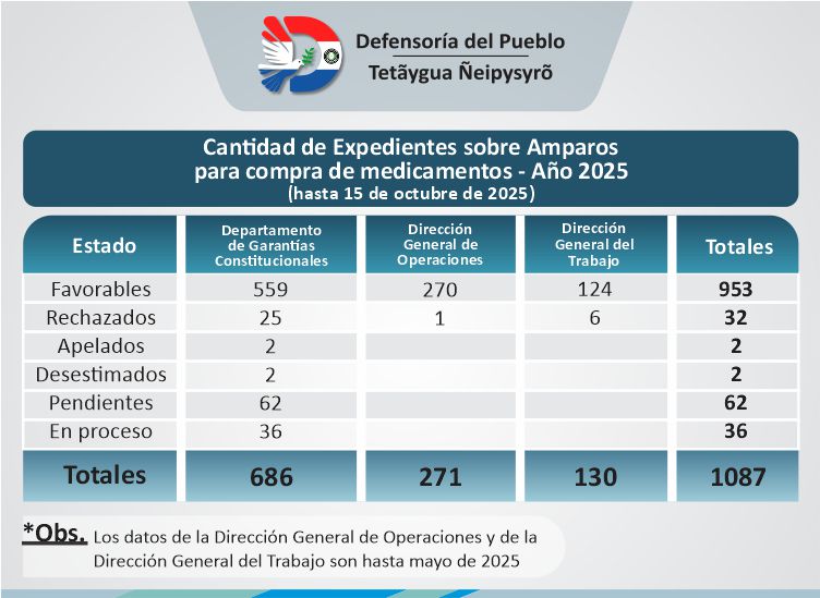 La Defensoría del Pueblo ya tramitó 1087 amparos para el acceso a medicamentos